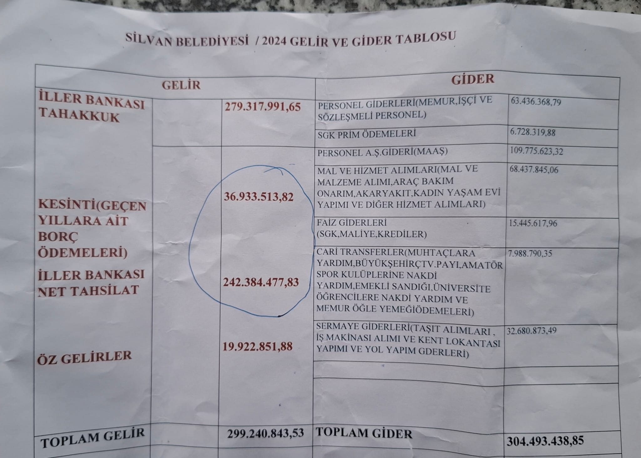 Yayınlanan belge, Silvan Belediyesi’nin 2024 mali yılına ait gerçek gelir ve gider rakamlarını ortaya koyarak tartışmalara açıklık getirdi.