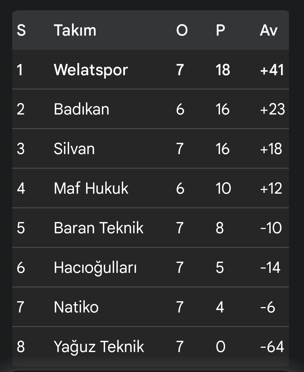 Dernek bünyesinde oluşturulan 8 takımlı turnuva, sporun birleştirici gücünü ortaya koyarken, Silvanlı hemşehriler arasında kaynaşmayı da güçlendiriyor. Turnuvanın 7. hafta güncel puan durumuna göre Welatspor liderliğini sürdürürken, Badıkan ve Silvan takımları zirve yarışındaki iddialarını koruyor.