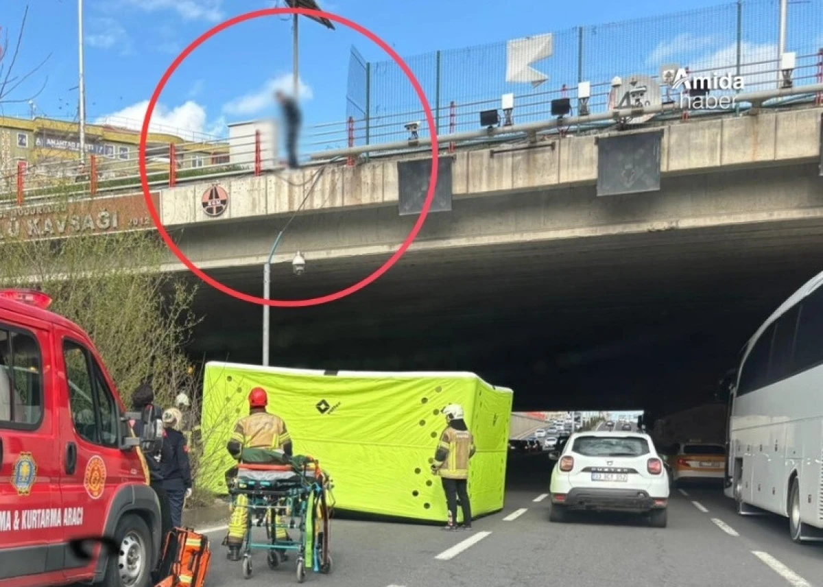 Trafiğin vızır vızır aktığı bölgede köprünün üstüne çıkan bir genç, aşağı atlamak istedi. Olay yerine polis ve sağlık ekipleri çağrıldı.