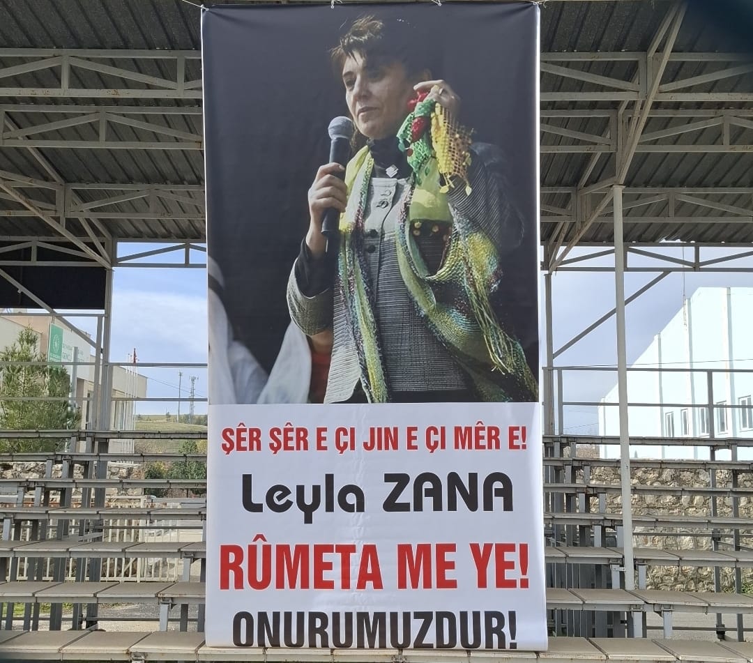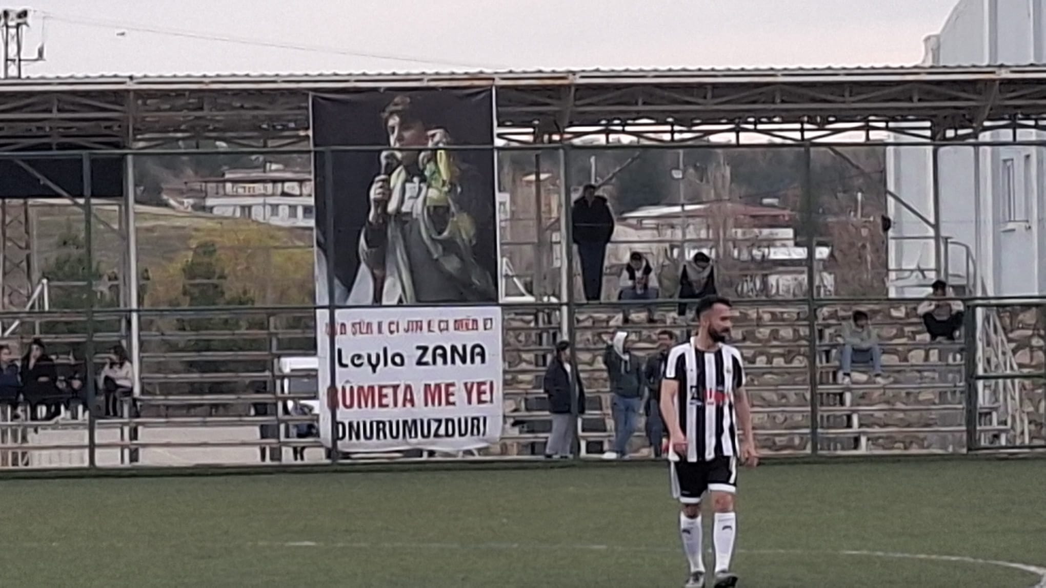 Silvanlı taraftarlar, Silvan Belediyespor–Bağlar Belediyespor maçında açtıkları pankartla Leyla Zana’ya destek mesajı verdi; tribünlerden yükselen mesaj alkışlarla karşılandı.