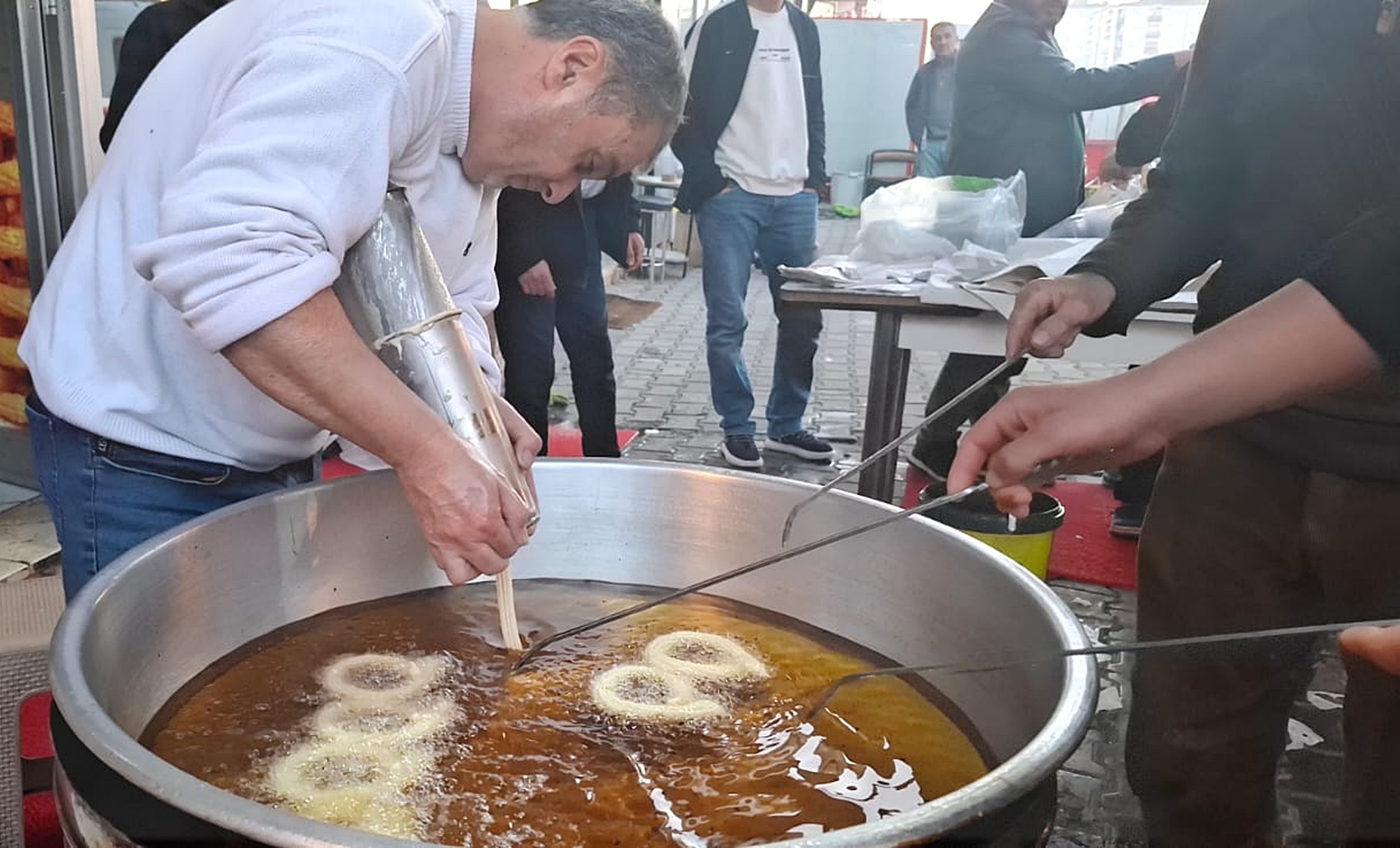 MALABADİ HABER – Ramazan ayının başlamasıyla birlikte Diyarbakır’ın Silvan ilçesinde iftar sofralarının geleneksel lezzeti olan halka tatlısına yoğun ilgi gösteriliyor. İlçede 200 ile 300 TL arasında satılan halka tatlısı, Ramazan ayına özel olarak İldiz Tatlıcılık tarafından 140 TL’den satışa sunuluyor. Yapılan indirim vatandaşlar tarafından memnuniyetle karşılanırken, tatlıcıda yoğunluk yaşanıyor.