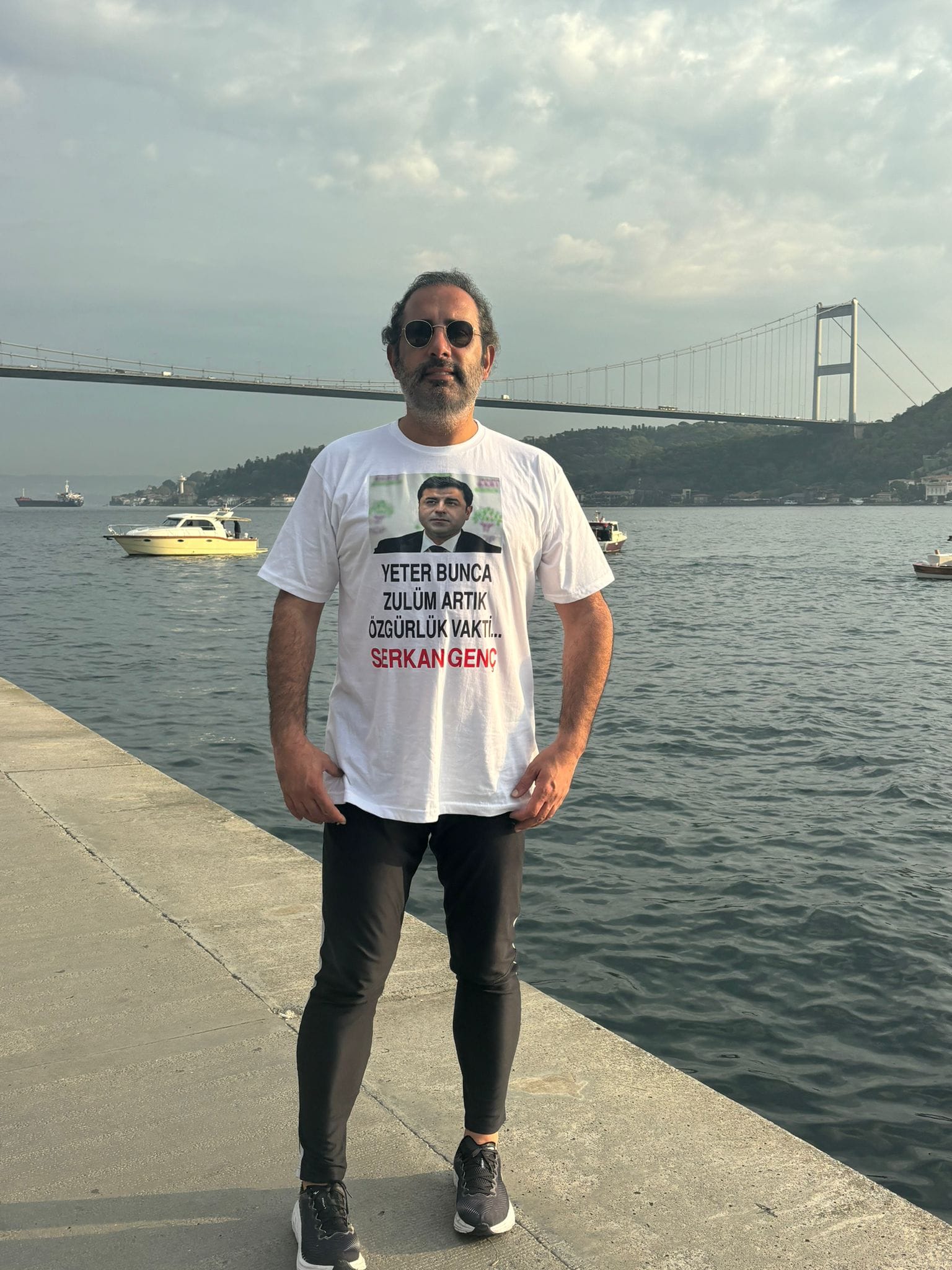 İstanbul’da yaşayan Genç, üzerinde “Yeter bunca zulüm artık. Özgürlük vakti” yazısı ve Demirtaş’ın portresi bulunan tişörtlerle kamuoyuna mesaj verdi.