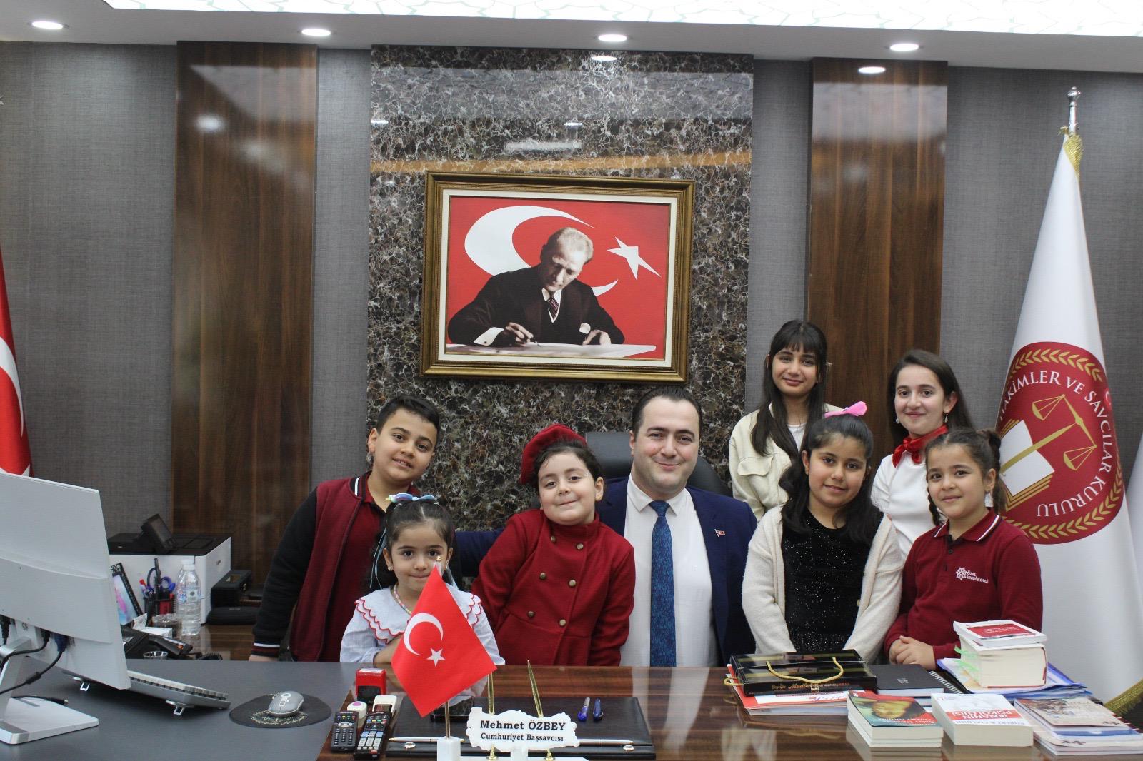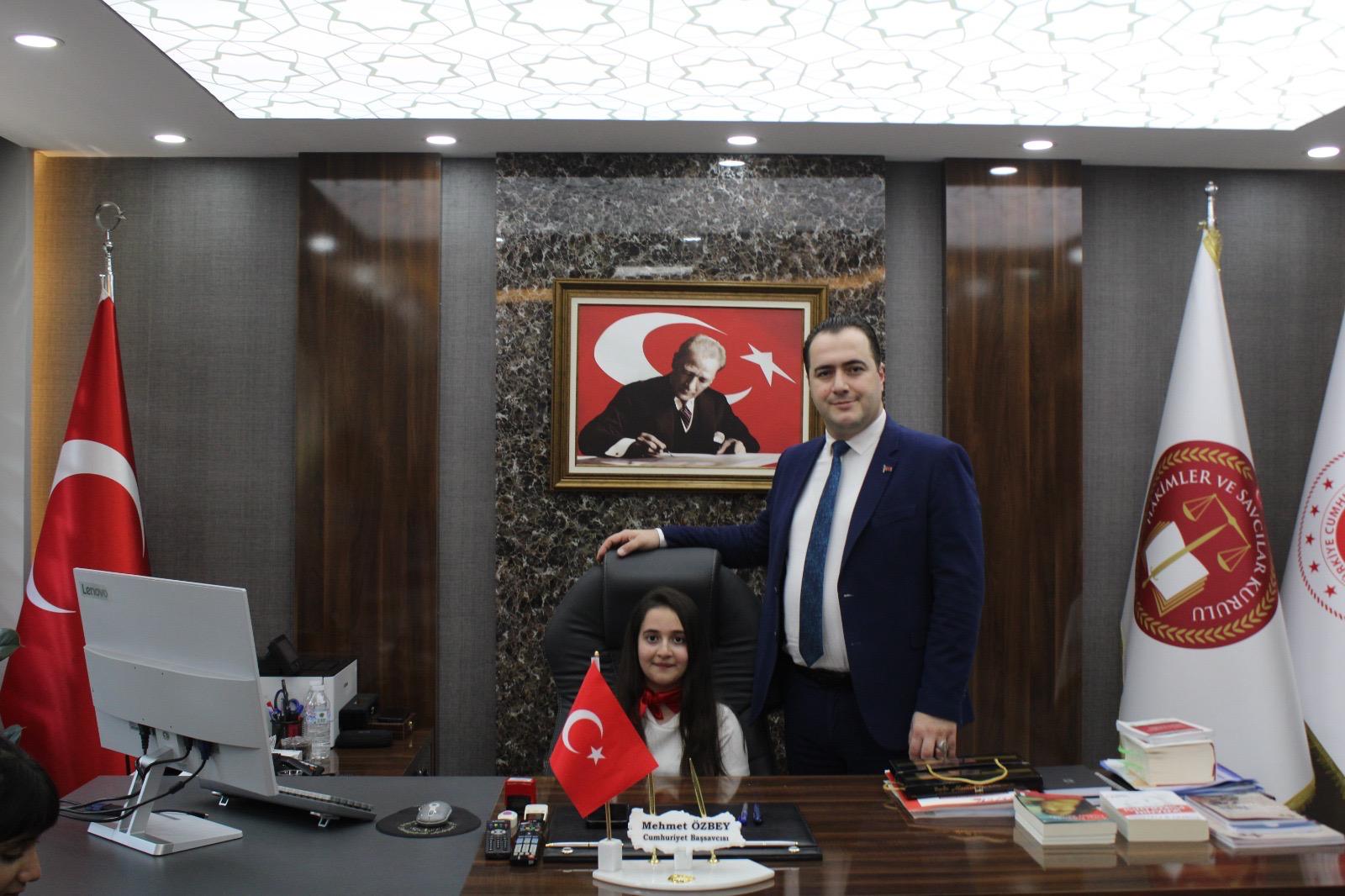 Silvan Cumhuriyet Başsavcısı Mehmet Özbey, 23 Nisan Ulusal Egemenlik ve Çocuk Bayramı dolayısıyla mesaj yayımlarken, bir öğrenciyi makamında ağırlayarak temsili olarak koltuğunu devretti.