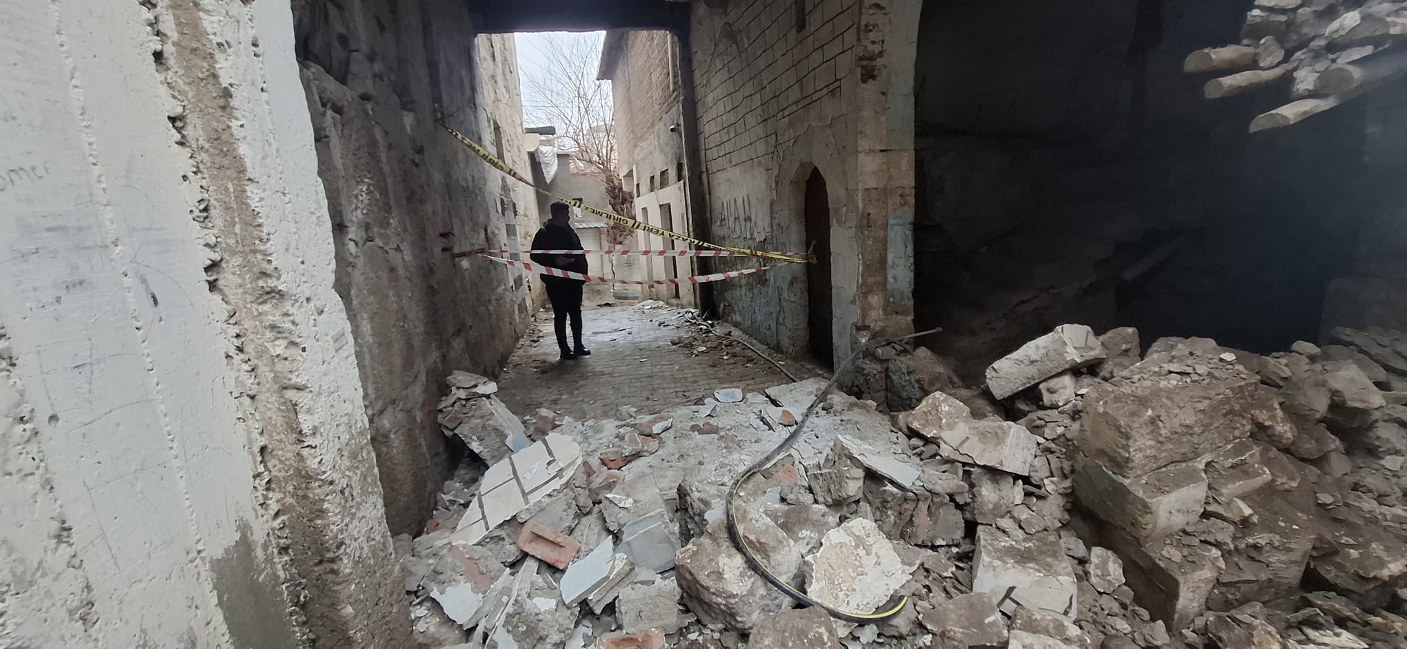 MALABADİ HABER – Silvan ilçesi Selahattin Mahallesi 505. Sokak’ta, sur koruma bandı üzerinde bulunan ve bir vatandaşa ait olduğu öğrenilen metruk/tarihi yapının bir bölümünde yıkılma meydana geldi.