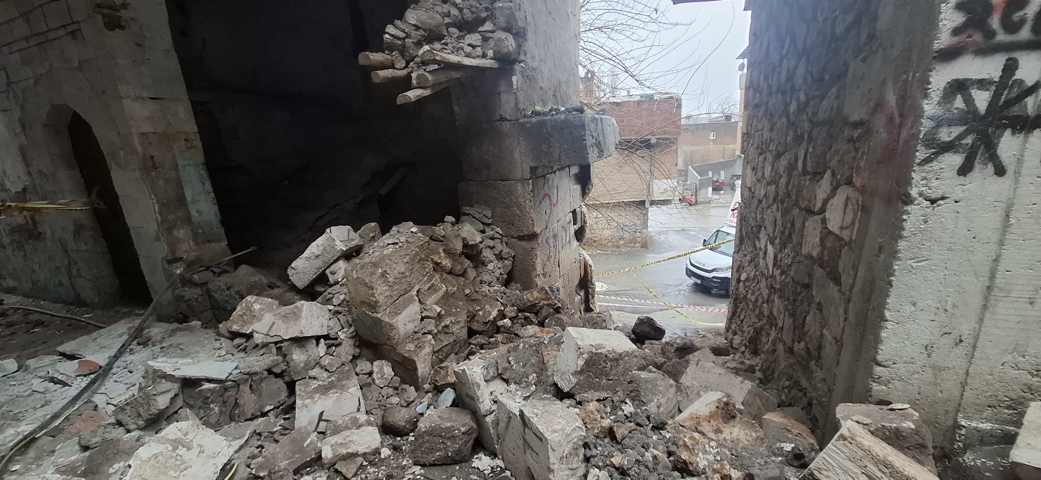 Silvan Selahattin Mahallesi’nde sur koruma bandı üzerinde bulunan tarihi yapıda yaşanan kısmi çökme, define kazısı iddialarını gündeme getirdi. Belediye yağışları işaret ederken, mahalle sakinleri yapının daha önce izinsiz kazılarla zayıflatıldığını savunuyor.