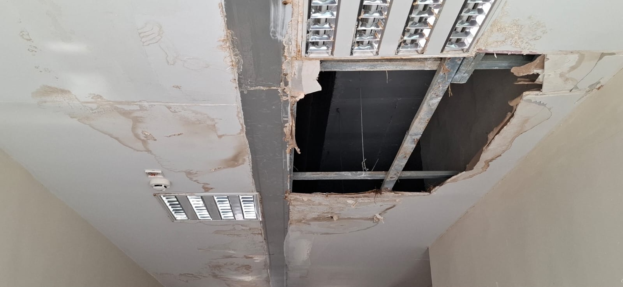 Bazı alanlarda tavan kaplamalarının çöktüğü, iç kısımların tamamen açığa çıktığı ve duvarlarda nem kaynaklı çürümelerin oluştuğu dikkat çekiyor. Bu görüntüler, hem bina güvenliği hem de hijyen açısından ciddi soru işaretleri doğuruyor.