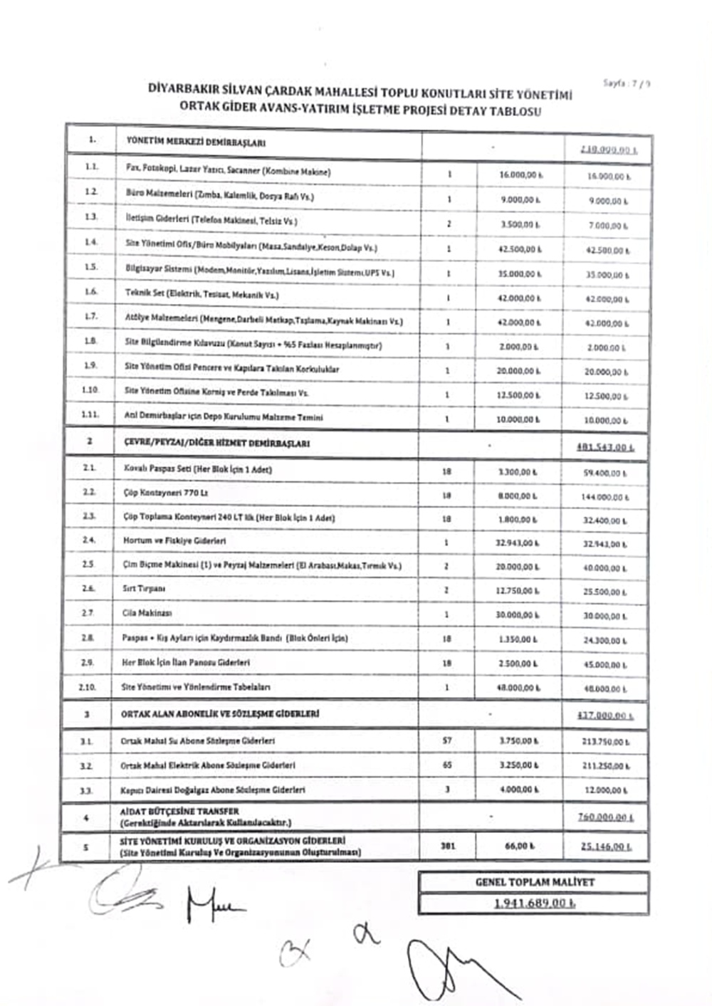 9 Sayfalık “Aidat ve Avans İşletme Projesi”nde Şok Rakamlar