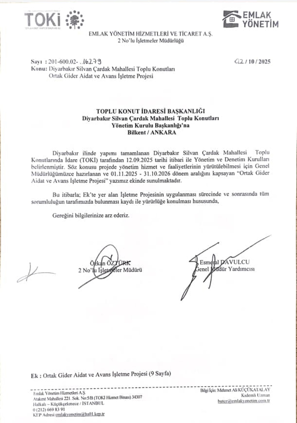 Emlak Yönetim A.Ş., 02.10.2025 tarihli resmi yazı ile TOKİ’ye: