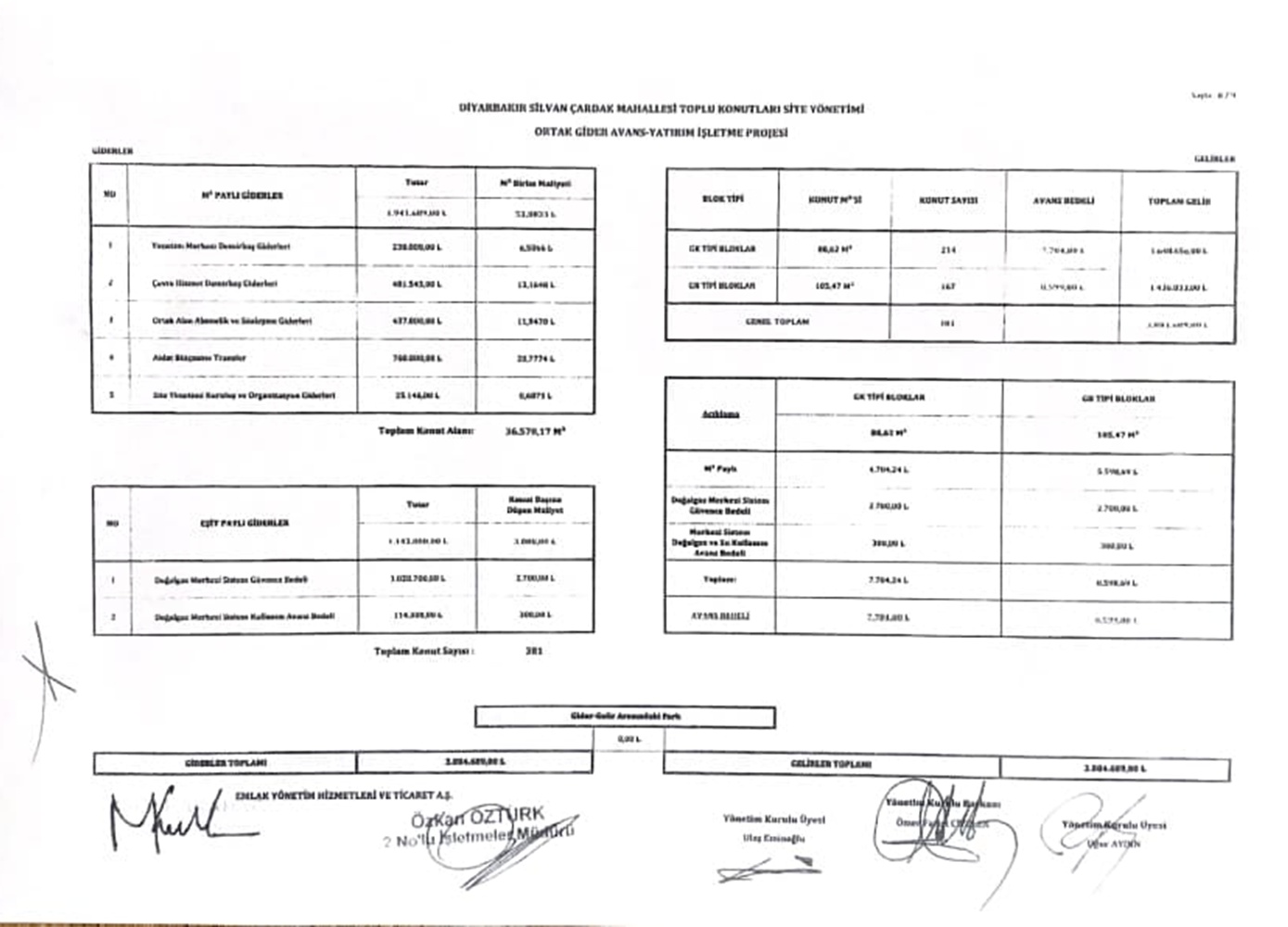 Emlak Yönetim'in hazırladığı “Ortak Gider Aidat ve Avans İşletme Projesi” belgelerinde yer alan rakamlar, hak sahiplerinde büyük tepki yarattı: