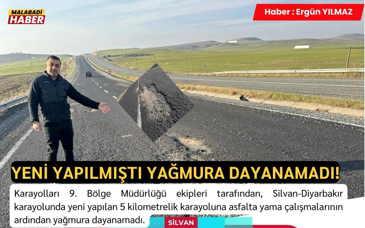 Karayolları 9. Bölge Müdürlüğü tarafından, Silvan-Diyarbakır karayolunun 27’nci kilometresinin beş kilometrelik bölümünde geçtiğimiz haftalarda yapılan çalışmaları yağmurun ardından başlayan bozulmalar tepkiye neden oldu.